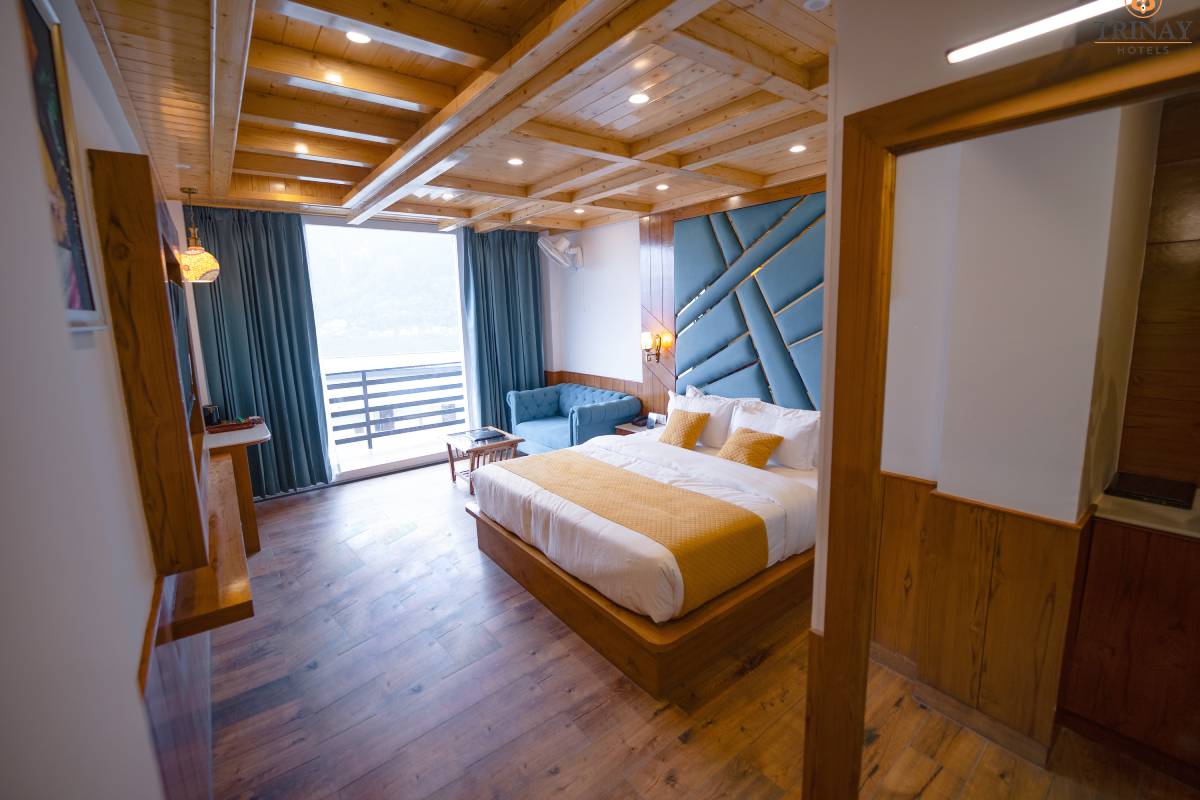 The Superior Room offers extra space and a refined ambiance with tasteful alpine décor and a scenic balcony. Perfect for guests who appreciate subtle luxury, the room includes premium bedding, a sitting area, flat-screen TV, and in-room essentials. Whether you're working remotely or relaxing with nature, this room promises a serene and memorable stay in the heart of the Himalayas.