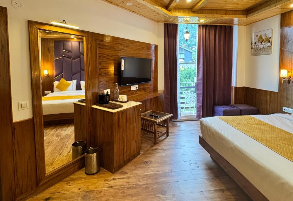 The Superior Room offers extra space and a refined ambiance with tasteful alpine décor and a scenic balcony. Perfect for guests who appreciate subtle luxury, the room includes premium bedding, a sitting area, flat-screen TV, and in-room essentials. Whether you're working remotely or relaxing with nature, this room promises a serene and memorable stay in the heart of the Himalayas.