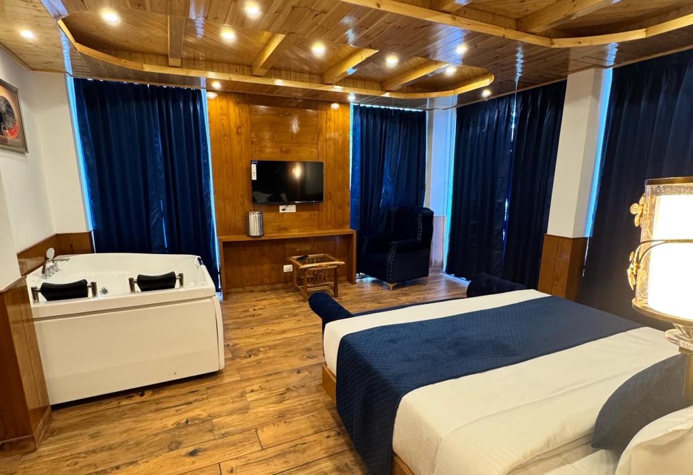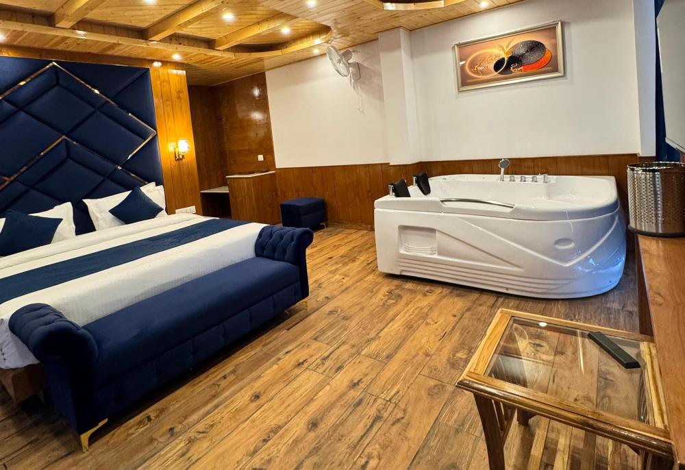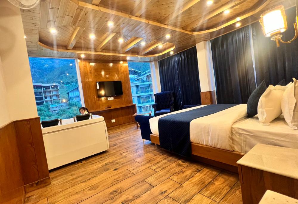 The White Season Jacuzzi Suite Room offers an indulgent stay with a private in-room Jacuzzi and stunning mountain views from the balcony. Perfect for luxury seekers or couples celebrating a special occasion, this suite features elegant wood décor, premium bedding, and modern amenities. Unwind in comfort, enjoy room service, and rejuvenate in a space designed for ultimate relaxation and privacy.